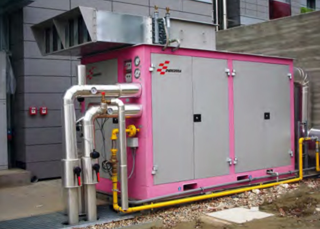 Durch die Koppelung des TEMA BHKW mit einer Adsorptionskältemaschine wird die Cogeneration zur Trigeneration. Die Adsorptionskältemaschine nutzt zur Kälteerzeugung die Restwärme der Abgase, ohne zusätzliche Antriebsenergie für einen Kompressor zu benötigen. Durch diese Form der Trigeneration kann der Brennstoff (Erdgas) mit Gesamtwirkungsgraden bis 90% ausgenutzt werden.